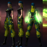 In the story I mention the Goodguy Associates, which is the local mob. Here we see them (high-ranking member Shiloh Armati and poor stupid Tony Vadas) extorting money from pop star Alba Bonaventura while Patrice chills and wonders if she can ask for an autograph.